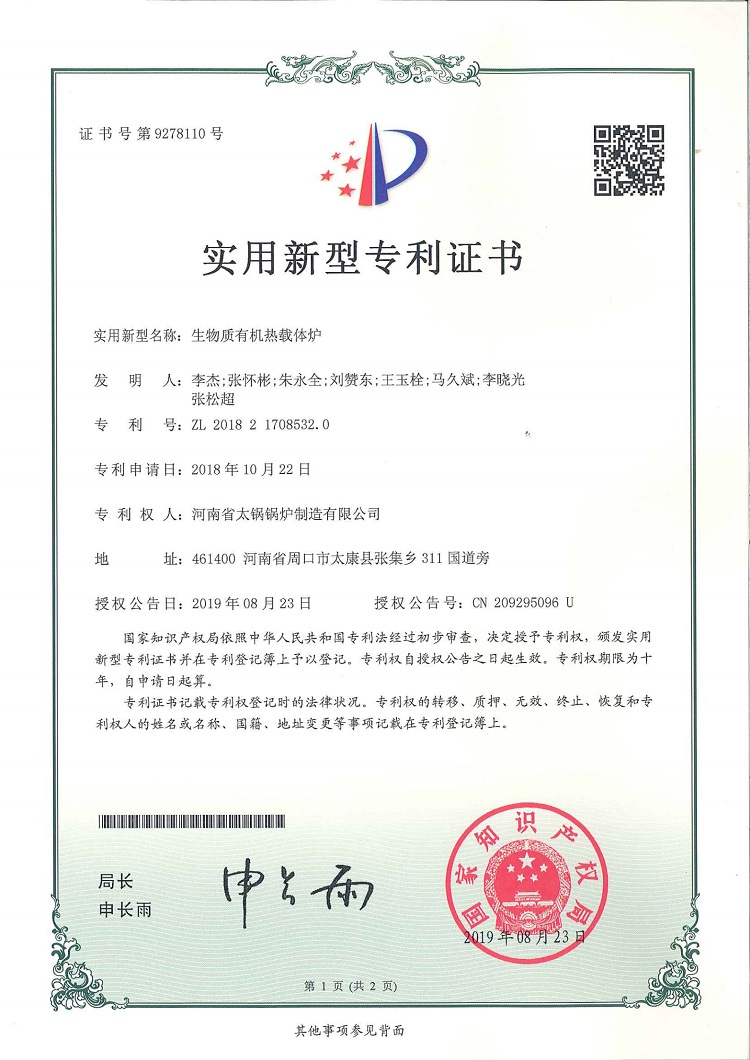 • 生物質有機熱載體爐專利